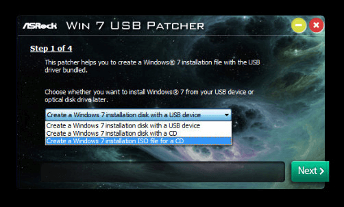 Create a Windows 7 installation disk with a USB device и нажимаем кнопку "Next".